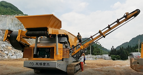 履帶式移動破碎站,液壓驅動,在山地、平地都能行走自如,爬坡能力強,爭分奪秒投入開采作業。